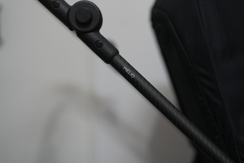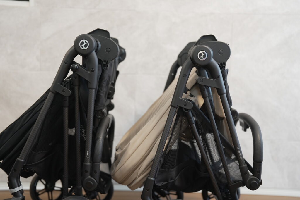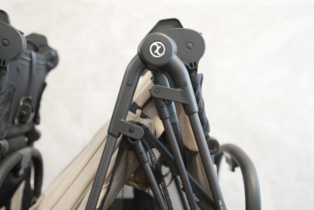 そしてこのドリンクホルダーのすごいところが、ドリンクホルダーを取り付けたまま折りたたみができる点!しかもメリオのスタイリッシュさを維持してくれるのがさらに嬉しいポイントです!